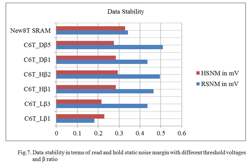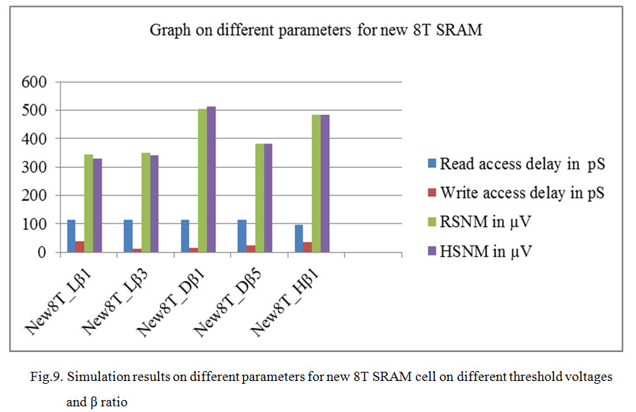 In this section the new 8T SRAM cell is examined under different β ratio and on different threshold voltages. The parameters taken for the analysis are shown in table 6 and fig. (9 and 10) depicts the pictorial analysis of different parameters.