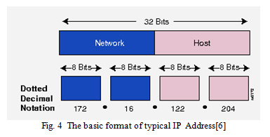 The 32 bit long IPv4 address has first field as network id which represents a particular network in the internet and second field is host ID which identifies a particular host on a particular network. The number of possible addresses using IPv4 is 232 4,294,967,296 (more than 4 billion) [5].