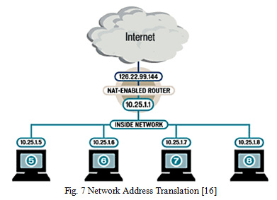 An Autonomous System uses a network infrastructure made up of private IP addresses. To have communication over the internet public IP addresses are needed since private IP addresses are rejected by ISP routers. In such scenarios to have the communication of private devices to the public world NAT is used. NAT can be a device, gateway or a firewall which has public IP address and represents organization over public network. Whenever the devices with private IPs makes request for public resources the NAT device first receives it and it will convert the packet address to itself and makes request on behalf of device using its own public identity. And on response from server it does the reverse way [15]. In Fig. 7 NAT device has public address as 126.22.99.144 and all private IPs are of range 10.25.1.X.
