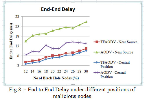 Hoan Lan et al in [5] have demonstrated that the impact of black hole attack is catastrophic and it is malicious node position dependent. If the malicious node is near the source node then it has most damage to the network performance. The network performance is also highly dependent on the speed of mobile node.