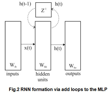 Recurrent neural network architectures can have many different forms. One common type consists of a standard Multy-Layer Perceptron (MLP) ie FNN on Fig.1, plus added loops.