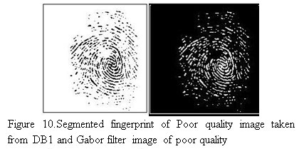 Figure 10.Segmented fingerprint of Poor quality image taken from DB1 and Gabor filter image of poor quality