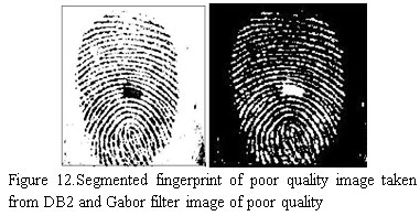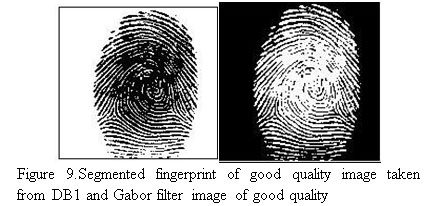 Fingerprint segmentation technique can improve the accuracy in collecting clear fingerprint area and mark noise areas. The segmented images of good and poor quality fingerprint are illustrated in figure below: