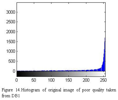Figure 14.Histogram of original image of poor quality taken from DB1
