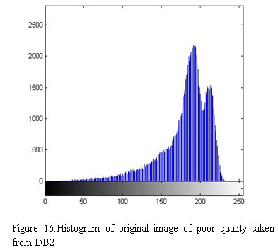 Figure 16.Histogram of original image of poor quality taken from DB2