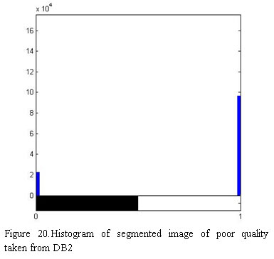 Figure 20.Histogram of segmented image of poor quality taken from DB2