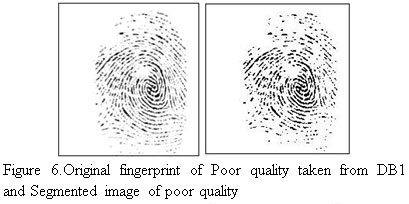 Figure 6.Original fingerprint of Poor quality taken from DB1 and Segmented image of poor quality