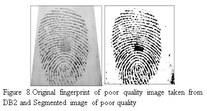 Figure 8.Original fingerprint of poor quality image taken from DB2 and Segmented image of poor quality