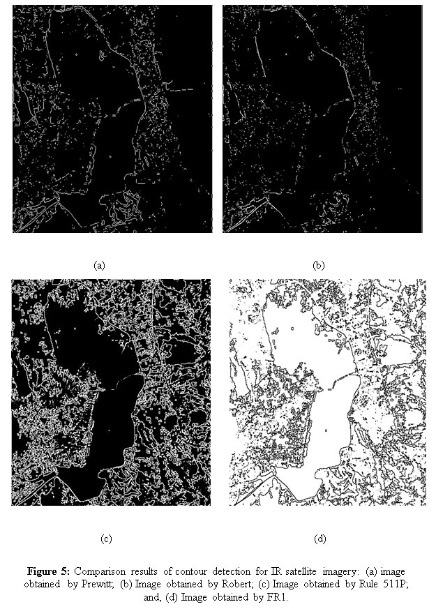 For this experimentation, we have used IR satellite image as shown in the Figure 3 from NWIA, 2010. Figure 5 shows the comparative results of the Prewitt, Robert and our proposed methods, whereas Figure 5(a) is the image produced by Prewitt operator, Figure 5(b) is the image produced by Robert operator, Figure 5(c) is the image produced by rule 511p, & Figure 5(d) is the image produced by Fuzzy Rules (FR1). It is clearly visible from the results that the proposed methods of contour determination are the best methods than Prewitt & Soble methods. Thanks to these results, experts can detect visually much more valuable information in the process of satellite images analysis.
