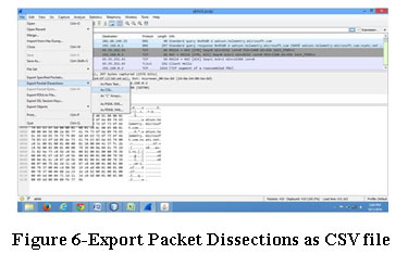 The packets which are saved in .pcap format is then converted into comma separated values so that it can be easily viewed in word document/notepad file for its feature selection.