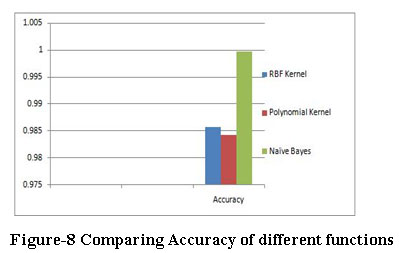 By analysis, the Naïve Bayes obtained better results than previously RBF Kernel and Polynomial functions were used for intrusion detection. Thus machine learning results obtained from Naïve bayes and cross validation technique gives better accuracy. The results show that applied pre-processing data and relevant feature selection using information gain for reducing feature of dataset are very important to increase the classification accuracy.