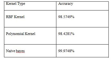 The proposed method was triumphantly tested on the data log files and the database. The results of the proposed testimony are produce more accurate and irrelevant sets of patterns and the discovery time is less than other approach. As a naïve Bayesian network is a restricted network that has only two layers and assumes complete independence between the information nodes. This poses a limitation to this research work. In order to alleviate this problem so as to reduce the false positives, active platform or event based classification may be thought of using Bayesian network is a Thus the mean intrusion obtained by calculating is differing from the earlier researches done through different kernel functions.