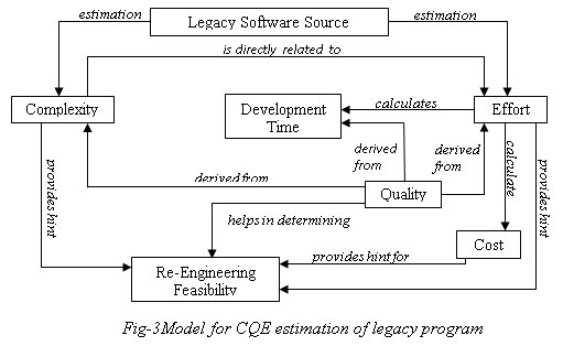 Various estimation techniques, reengineering models and their application were studied. Also the terms viz. legacy code, legacy system and legacy program are used interchangeably in the present research. The present work was undertaken to effectively reengineer the legacy program by estimating CQE. The below mentioned flow chart illustrates the various stages of CQE estimation of a legacy program.