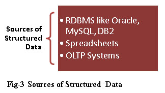 To analyze structured data, first we must identify the source of data. Source of structured data can be any RDBMS like oracle, SQL Server, DB2, MySQL, Spreadsheets or OLTP Systems. Following are the source of structured data.