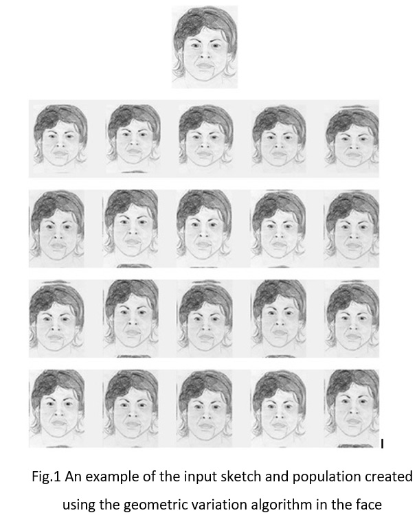 Matching Forensic Sketches to Mug Shot Photos Using a Population of Sketches Generated by Combining Geometrical Facial Changes and Genetic Algorithms