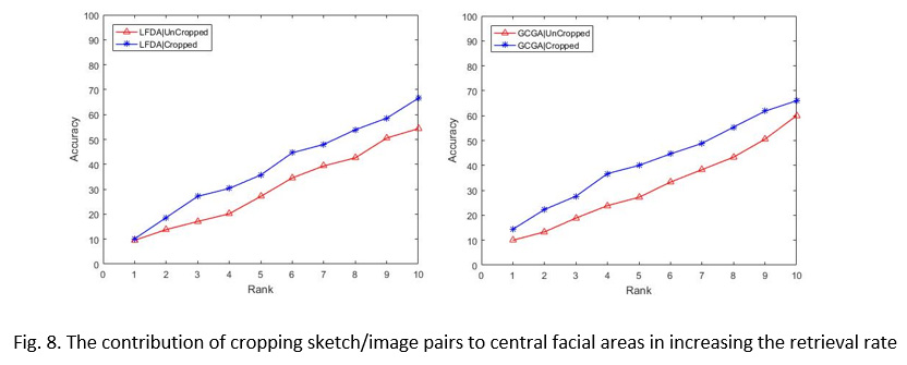 Figure 8: The contribution of cropping sketch/image pairs to central facial areas in increasing the retrieval rate
