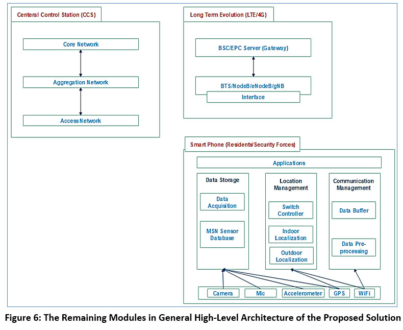 As presented in Figure 1.6, the 2G/3G/4G/5G – Mobile Networks module has two major components which named as BTS/NodeB/eNodeB (eNB) / gNB and BSC/EPC Server (Gateway) respectively. The BTS/NodeB/eNodeB(eNB)/gNB is a fixed base station that has GSM/UMTS/E-UTRAN/NR interfaces (radio technologies). And, it can transmit and receive different data and signals from/to residents and security forces mobile phones via its own transceiver antenna within a cell. Whereas, BSC/EPC Server (Gateway) has encapsulate and control the core network of 2G/3G/4G/5G which includes different respective gateways such as S-GW and PDN-GW.