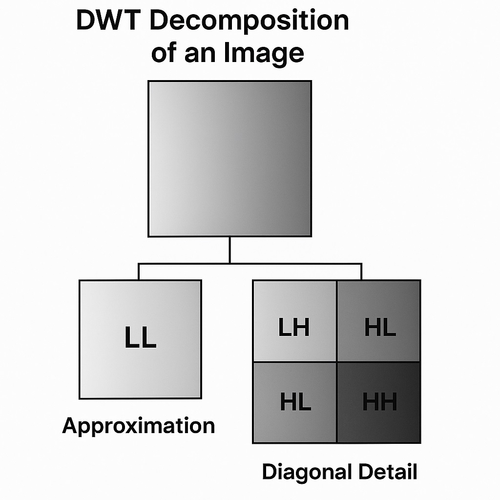 Wavelet Transform Analysis The Discrete Wavelet Transform (DWT) is employed to decompose the input image or signal into sub-bands: LL, LH, HL, and HH. The LL sub-band, containing the most significant information, is selectively encrypted, while the other bands may undergo further scrambling to enhance security.