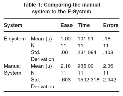 Table 1: Comparing the manual system to the E-System