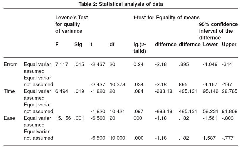 Table 2: Statistical analysis of data