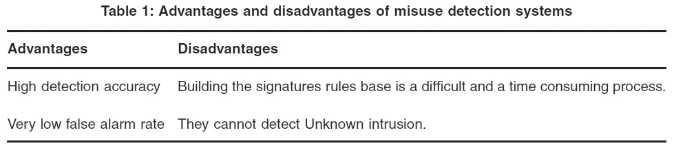 Table 1: Advantages and Disadvantages of Misuse Detection Systems