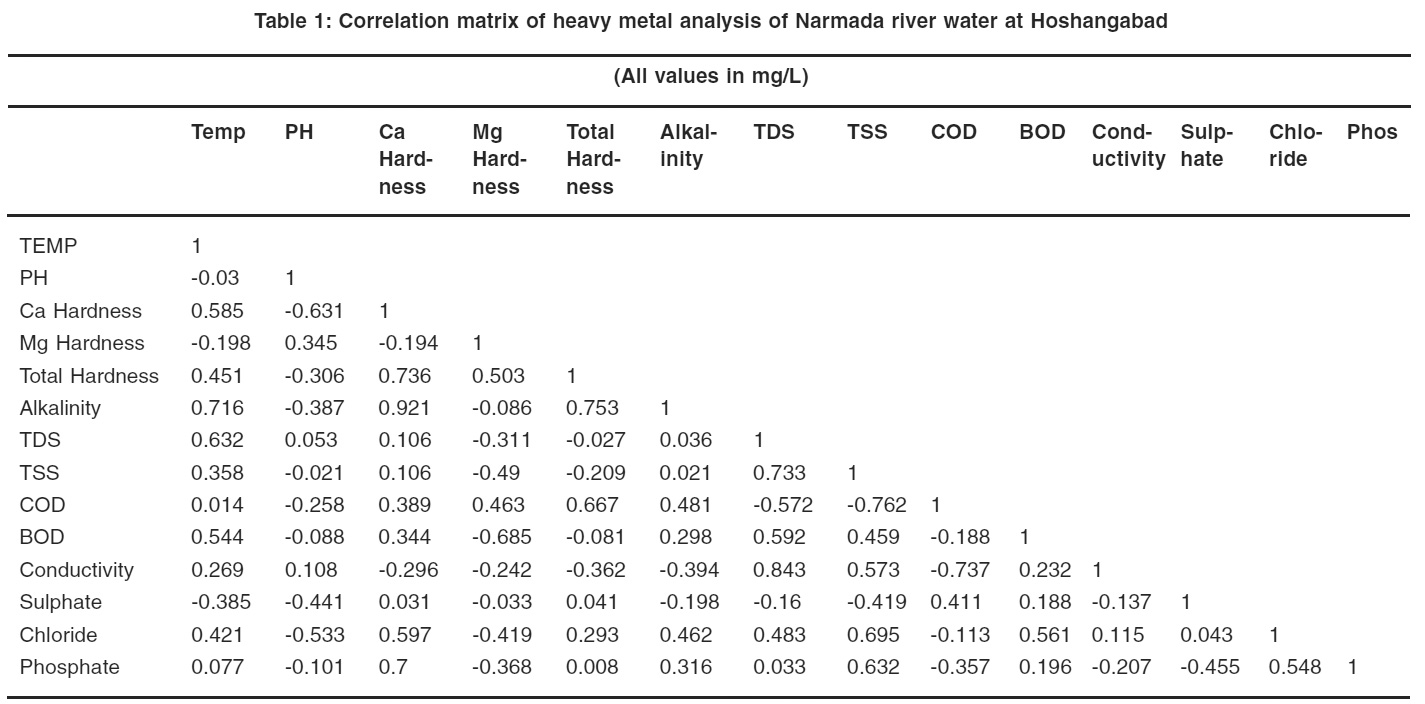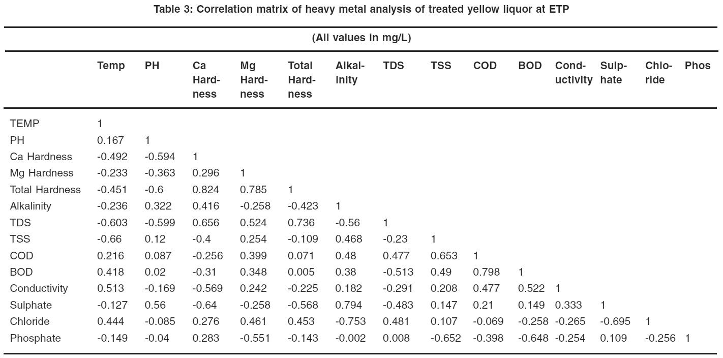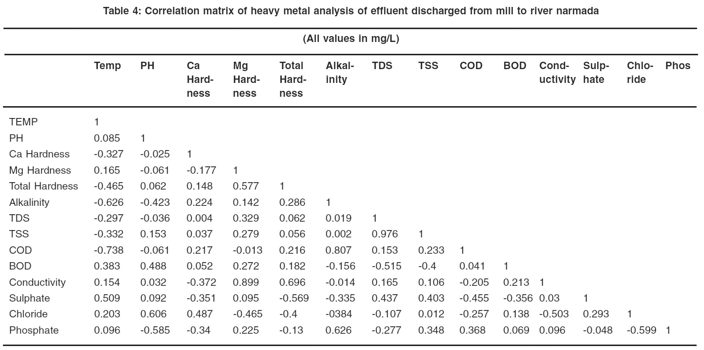 Table 4: Correlation matrix of heavy metal analysis of effluent discharged from mill to river narmada
