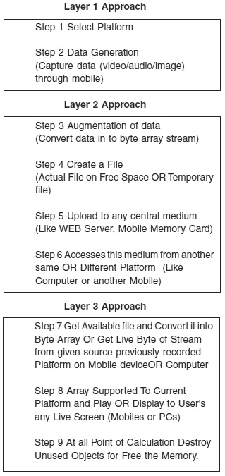 The recent convergence of the Internet and mobile radio has also accelerated the demand for “Internet in the pocket” on light, low-cost terminals, as well as for wireless technologies like GSM/GPRS[1][2], UMTS, Wi-Fi and WiBro that boost data throughput and reduce cost per bit. Mobile networks are now going multimedia, potentially leading to an explosion in throughput from a few bytes for the Short Message Service (SMS) to a few Kbits/s for the Multimedia Messaging Service (MMS), to several 100 Kbits/s for video content. Video has been an important media for communications and entertainment for many decades. Initially video was captured and transmitted in analog form. The advent of digital integrated circuits and computers led to the digitization of video, and digital video enabled a revolution in the compression and communication of video. Video compression became an important area of research in the late 1980’s and 1990’s and enabled a variety of applications including video storage on DVD’s and Video-CD’s, video broadcast over digital cable, satellite and terrestrial (over-the-air).Digital television (DTV), and video conferencing and videophone over circuit-switched networks. The growth and popularity of the Internet in the mid-1990’s motivated video communication over best-effort packet networks. Video over best-effort packet networks is complicated by a number of factors including unknown and time-varying bandwidth, delay, and losses, as well as many additional issues such as how to fairly share the network resources amongst many flows and how to efficiently perform one-to-many communication for popular content. The Mobile AR[3] System can be defined as; “A mobile AR system is one in which augmentation of the data occurs through available knowledge of where the user is (the user’s location and therefore the surrounding environment)”. In the present study, we have described that how to develop an algorithm based on our designed Layered Architecture for MARS and implementation for MARS Application (Live streaming through Mobile) on mobile platform. Here we capture live stream through mobile ,augment it and uploading to web server and from web server any mobile or computer users can see live video streaming on their devices. To implement MARS Application (Live streaming through Mobile) on mobile platform we have used J2ME library: MIDP, (CLDC), Net Beans 5.5.1 and 6.8 and Mobile SDK