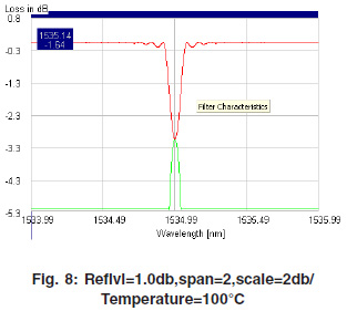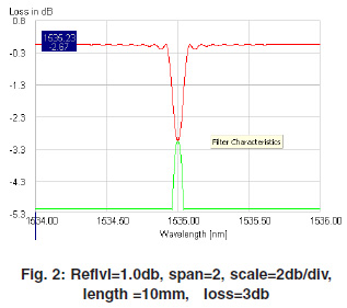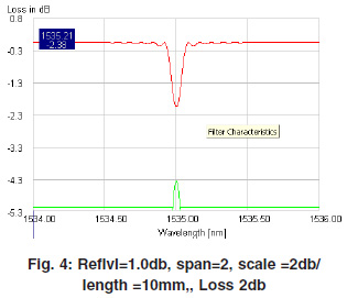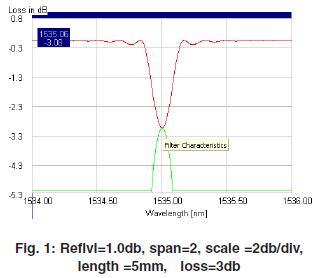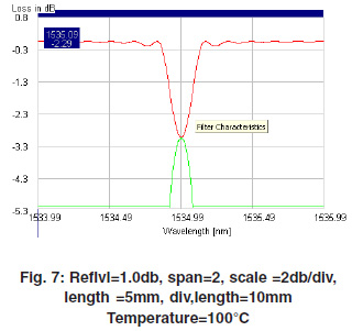 Simulation results are taken for uniform grating, different length (5mm and 10mm), and different reflection loss (1db, 2db and 3db). Simulation results give spectral properties of grating for uniform grating and temperature effected grating.