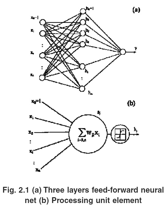 Figure 2.1 (a) Three layers feed-forward neural net (b) Processing unit element
