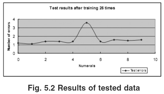After training 26 times, the network is tested. We can see that there were more errors for numeral -5″. This means that numeral -5″ still need more network training to reach an accuracy of 99%.