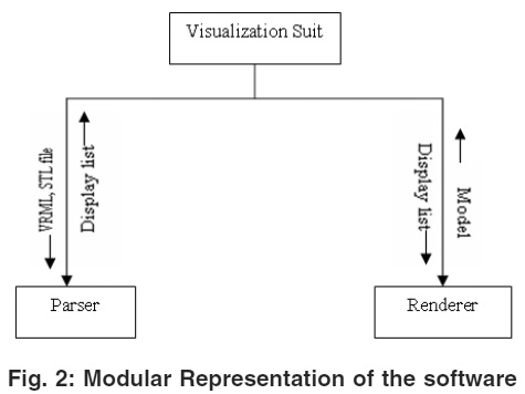 Stereoscopic display is a fundamental part of virtual reality. It is an effective way to enhance insight in 3D scientific visualization.16 This visualization suit demonstrates how a low end, inexpensive viewing technique can be used as a trick to produce the same effect as high-end stereo viewing. This entire visualization suit is divided into Parser and Renderer modules as shown in the figure 2.