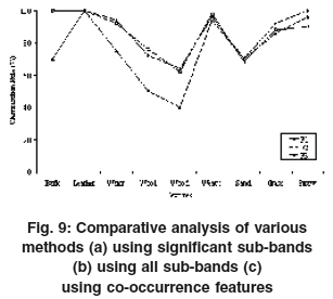 Figure 9: Comparative analysis of various methods (a) using significant sub-bands using all sub-bands (c) using co-occurrence features