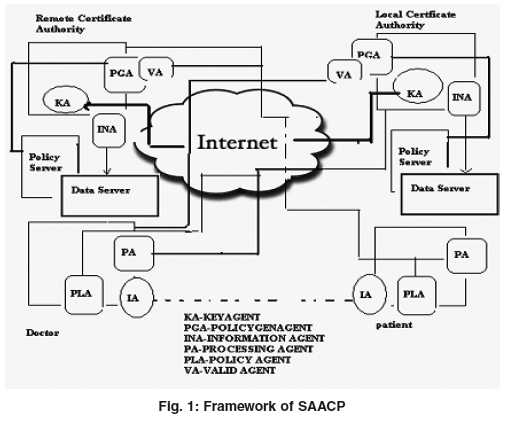 Mobile agent technologies are used to provide transparent, secure, interoperable, and integrated e-Health information systems for the provision of adapted and personalized sustainable services to the citizens. The purposed of using mobile agent is to reduce cost and to deliver health care services at a distance10. Holt et al., proposed hidden credentials11, a system that protects sensitive credentials and policies. Furthermore, the system reduces the network overhead as it needs fewer rounds of interaction compared to traditional trust negotiation. Fahed Al -Nayadi et.al proposed a dynamic, distributed and heterogeneous policy framework for sharing medical information among autonomous and disparate healthcare information systems in P2P environment12. This framework provides privacy, confidential and security to all the healthcare professionals accessing the system