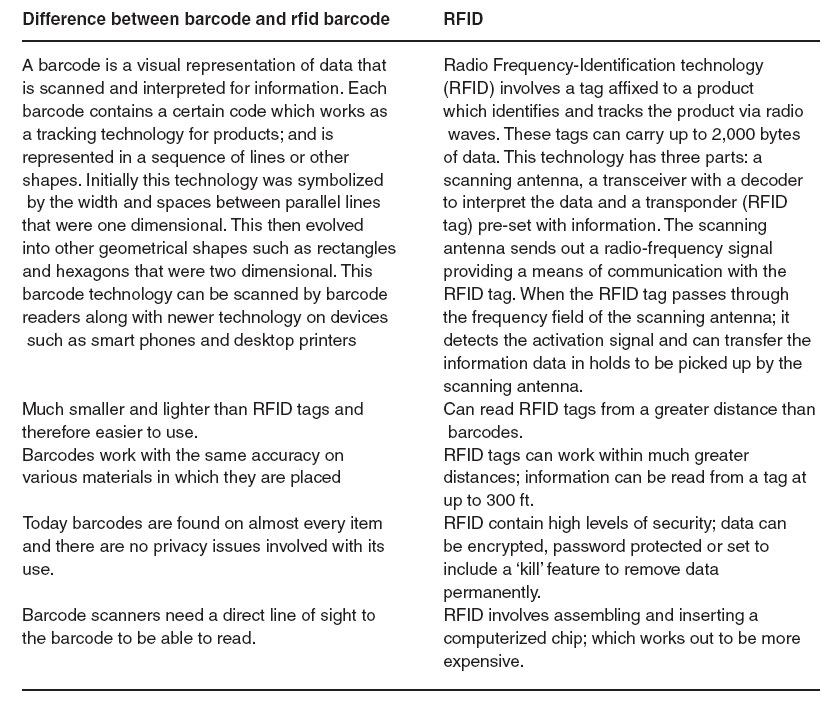 - Unique item identification is easier to implement with RFID than with barcodes,