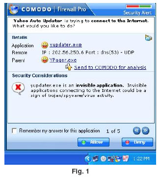 software for the secure the system. When the user login to the famous messenger Yahoo… yahoo trying to update their software, the firewall warns