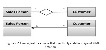 In Computer Science, the Conceptual Data Model (CDM) is the most abstract form of data model. A CDM is often adapted toward designing information systems or database management systems. Entity relationship diagrams or UML diagrams used for domain modeling are examples of CDM. A CDM includes the expressivity for structuring a domain for the data employed in a software system by means of concept subsumption hierarchies and domain class properties and attributes. CDM is typically used for checking constraints on the conceptual model to detect faulty data situations, if any logical formalization occurs. The example of Figure 3 presents a CDM that is rendered using two of the notations supported by Enterprise Architect.
