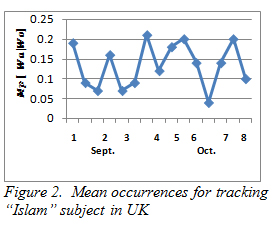 Figure 2.  Mean occurrences for tracking “Islam” subject in UK